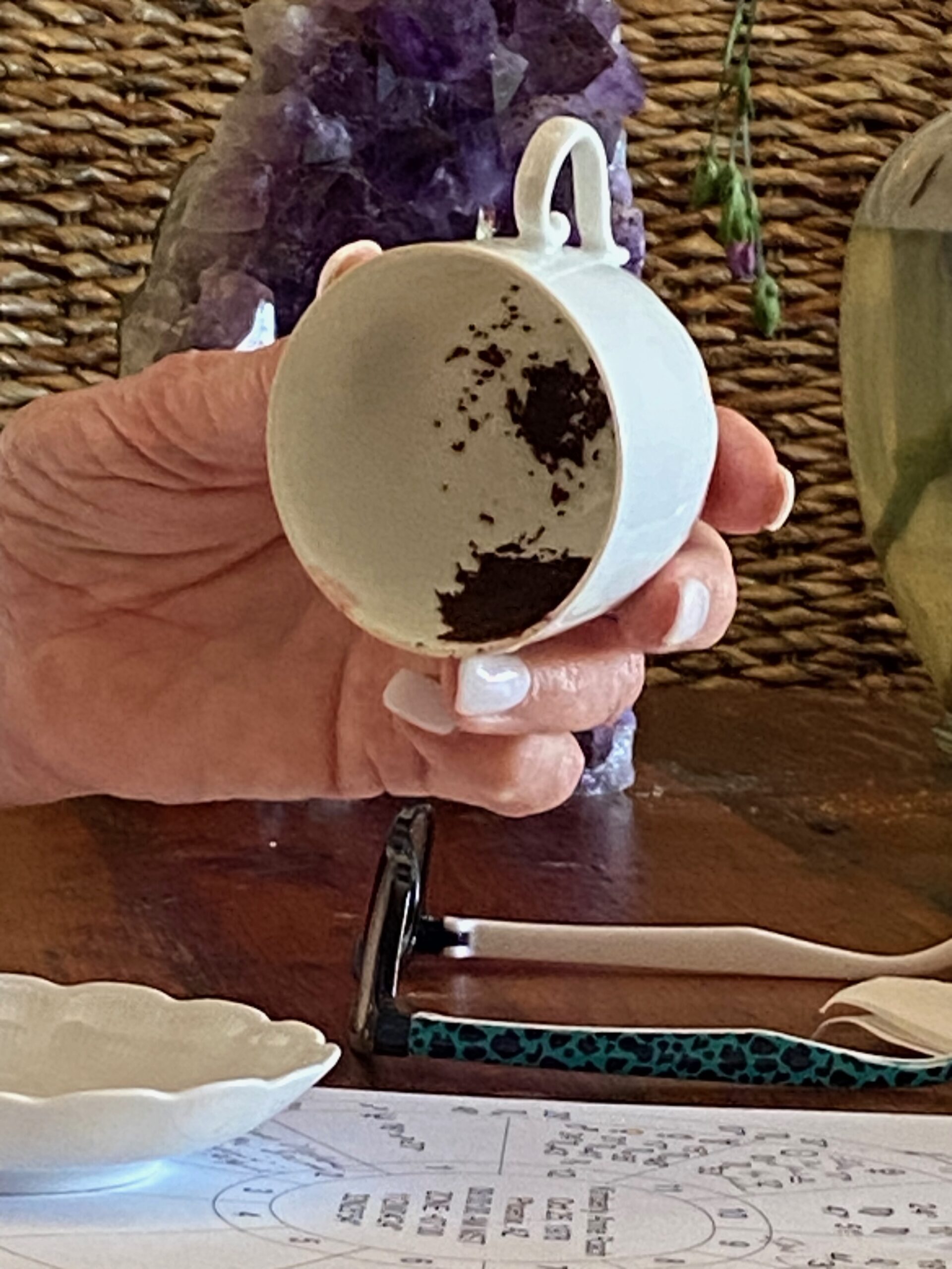 This month I wanted to share a divination tool that has become somewhat of a lost art, Tea Leaf Reading! Tea leaf reading, also known as Tasseomancy, is the art and practice of prophecy using loose leaf tea leaves and a teacup. In a typical tea leaf reading you ask a question or two to the cup prior to drinking, infusing your energy and intention into the tea. Once completed, we circle the cup around the saucer, repeating our questions and place it upside down on to the saucer. Then the tea leaves that are left over in the cup will be examined by the reader. The reader would then see what kind of patterns and shapes have formed in the teacup and explain their meaning. Rather than simply talking about it we wanted to give you the EXPERIENCE of a tea leaf reading!! That’s why this month, I sat down with one of my favorite teachers, Janice Roper, to share how she blends tea leaf reading and your natal astrology chart, to create an insightful message to help propel you forward.
